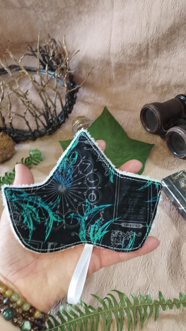 - Matériaux : Coton motif ésotérique magique et éponge en bambou blanche, avec un petit ruban pour décorer ou accrocher.