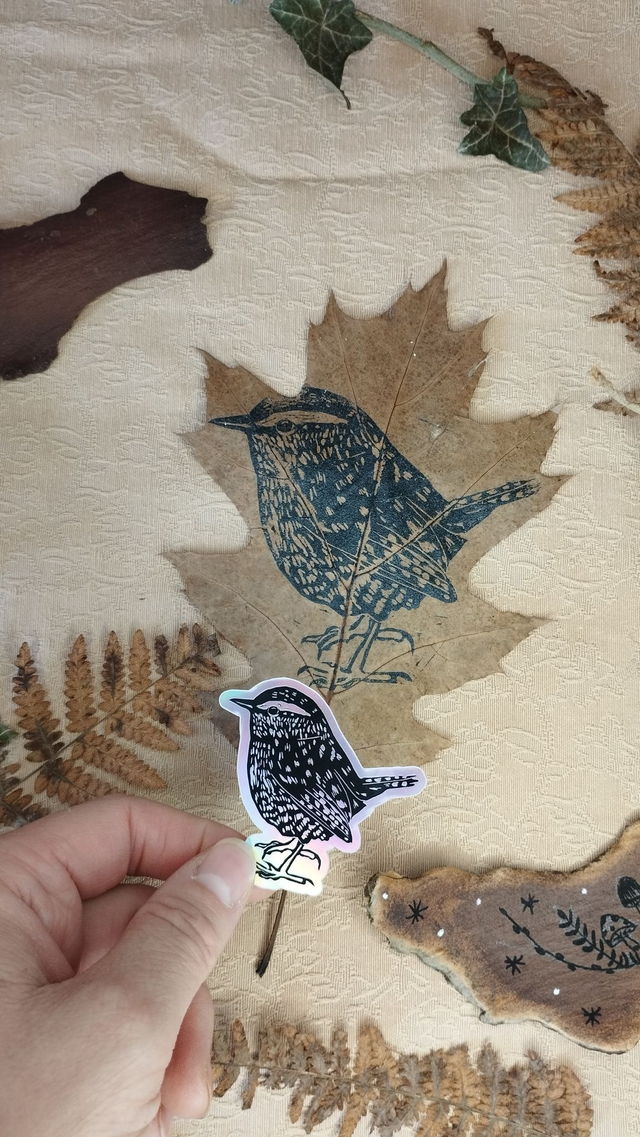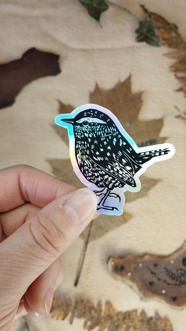 Une tête de renard roux holographique, une effraie des clochers en vol, un troglodyte mignon holographique, vendus en lot.