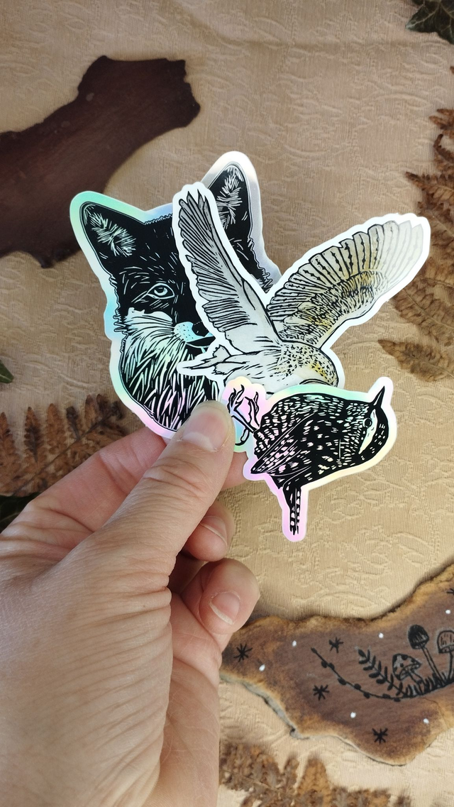 Lot de 3 stickers (renard, chouette effraie, troglodyte)