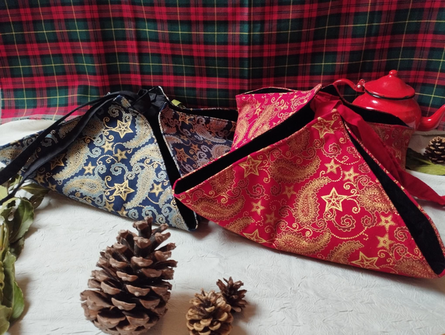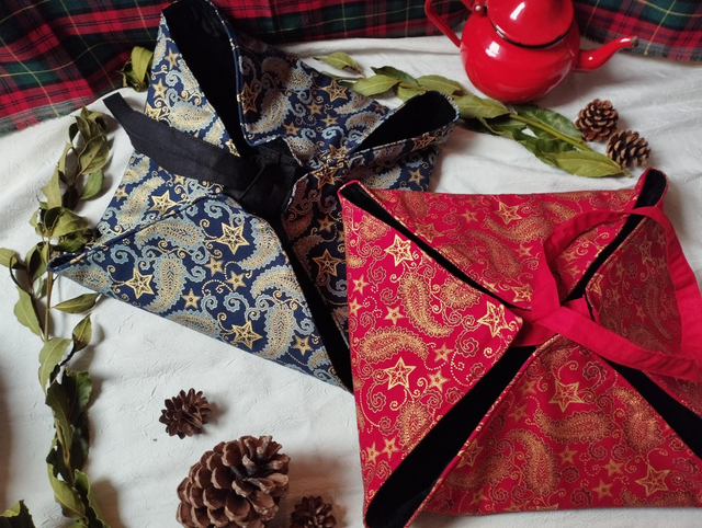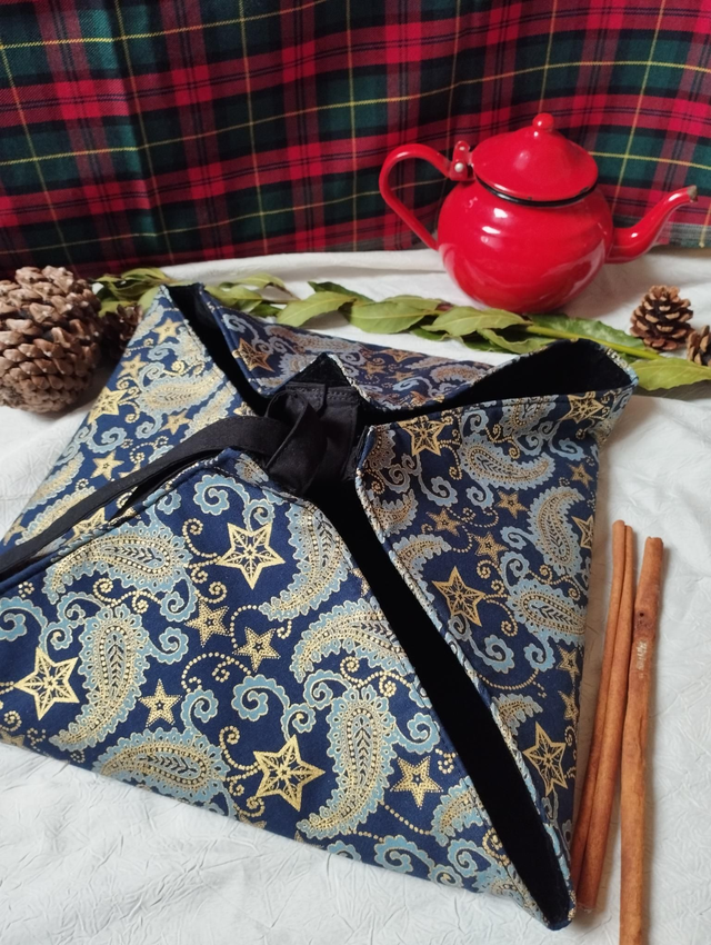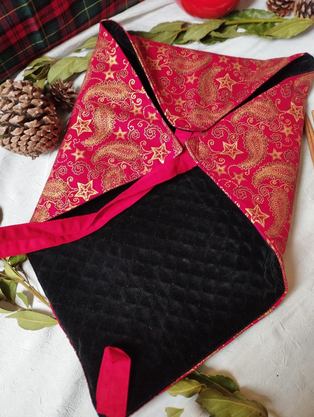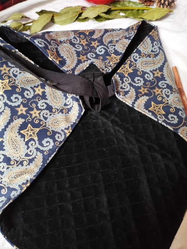 - Matériaux : Tissu en coton avec motif étoile dorée, festif, noël oriental et intérieur en velours.