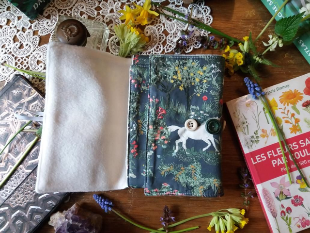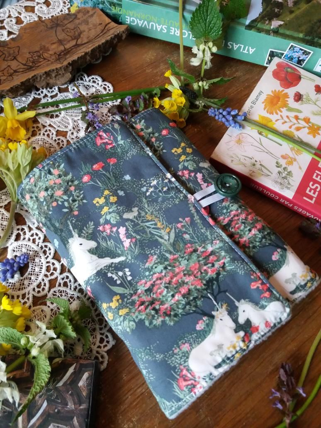 Protège livre jardin de la licorne, envie de printemps et de magie, modèle printanier et féérique