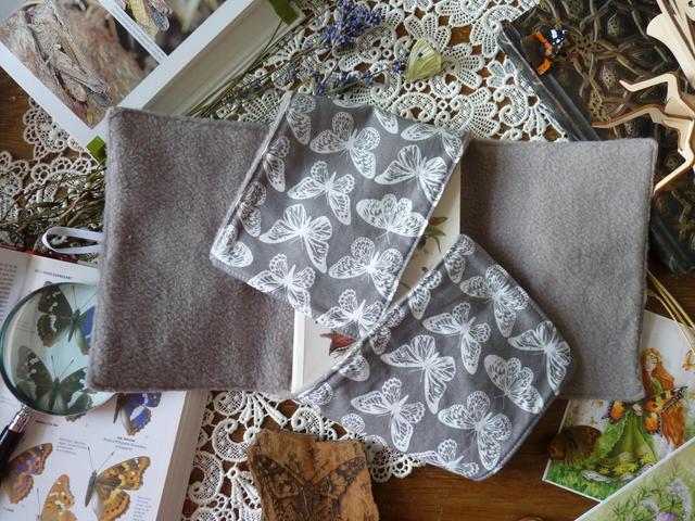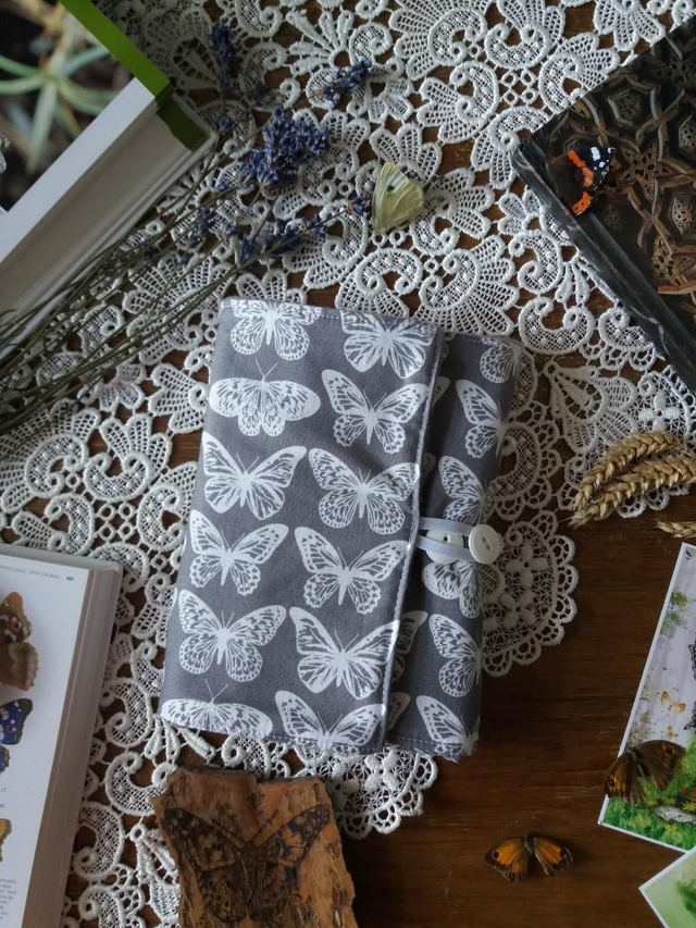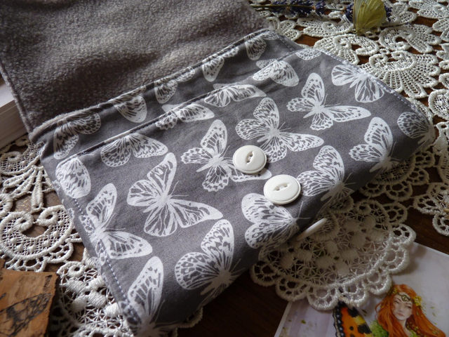 - Matériaux : tissus extérieur en coton, motif papillons blancs, tissus intérieur en polaire tout doux pour protéger votre livre préféré.
