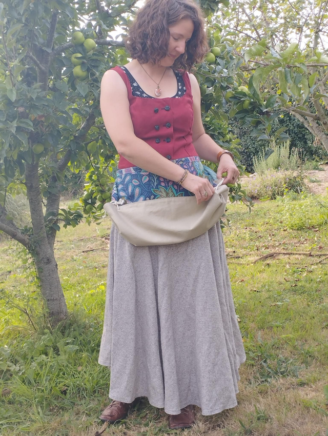 Description : Découvrez le tablier de récolte, idéal pour vos cueillettes de fruits, légumes, plantes et autres éléments de la nature. Ce tablier est équipé de liens pour attacher dans le dos et de cordelettes ajustables pour créer une poche pratique.