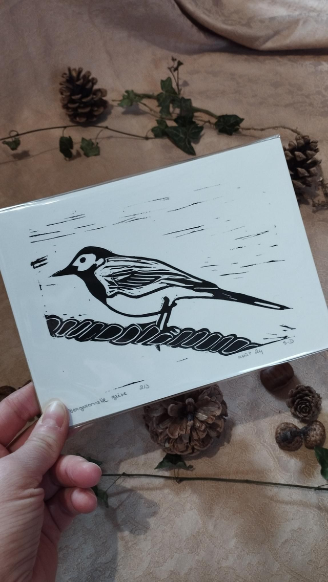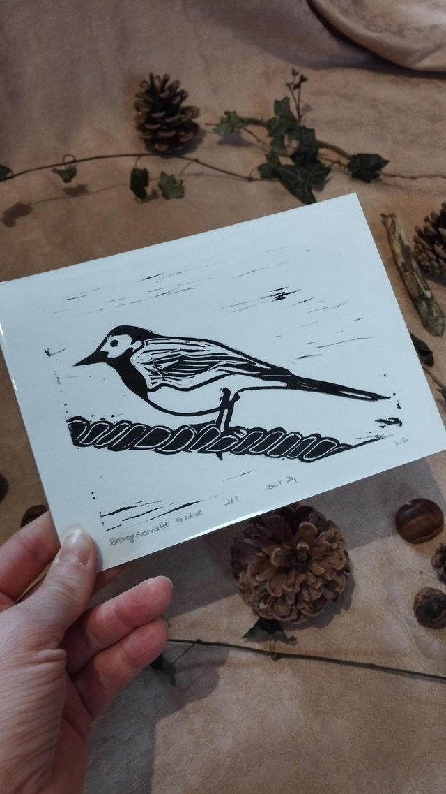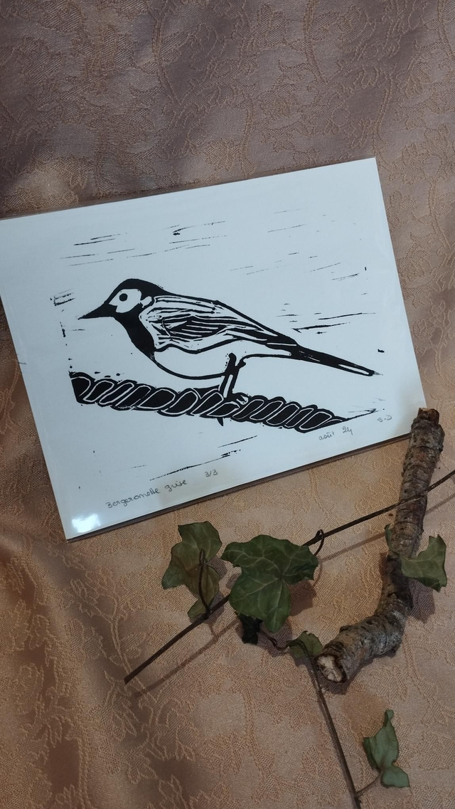 Chaque linogravure est imprimée manuellement par mes soins, ce qui confère à chaque illustration un caractère unique.